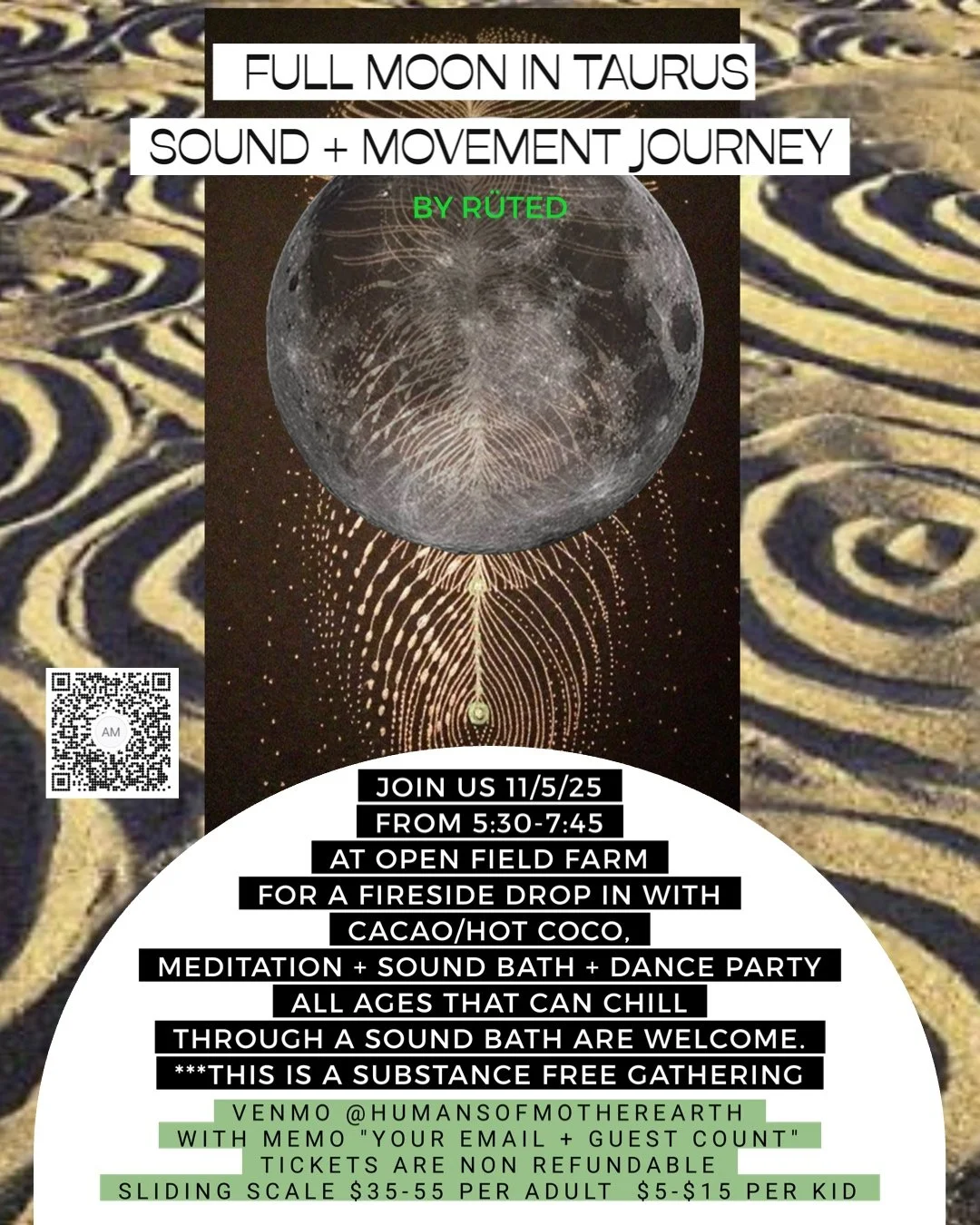 Every other month, I host sound and movement gatherings under the full moon with One Song Sound Medicine at Open Field Farms, among the rolling hills of Petaluma on Coastal Miwok territory. These evenings are portals—guiding us inward through meditation and sound healing, then lifting us outward into movement and dance, carried by music attuned to the moon’s rhythm.